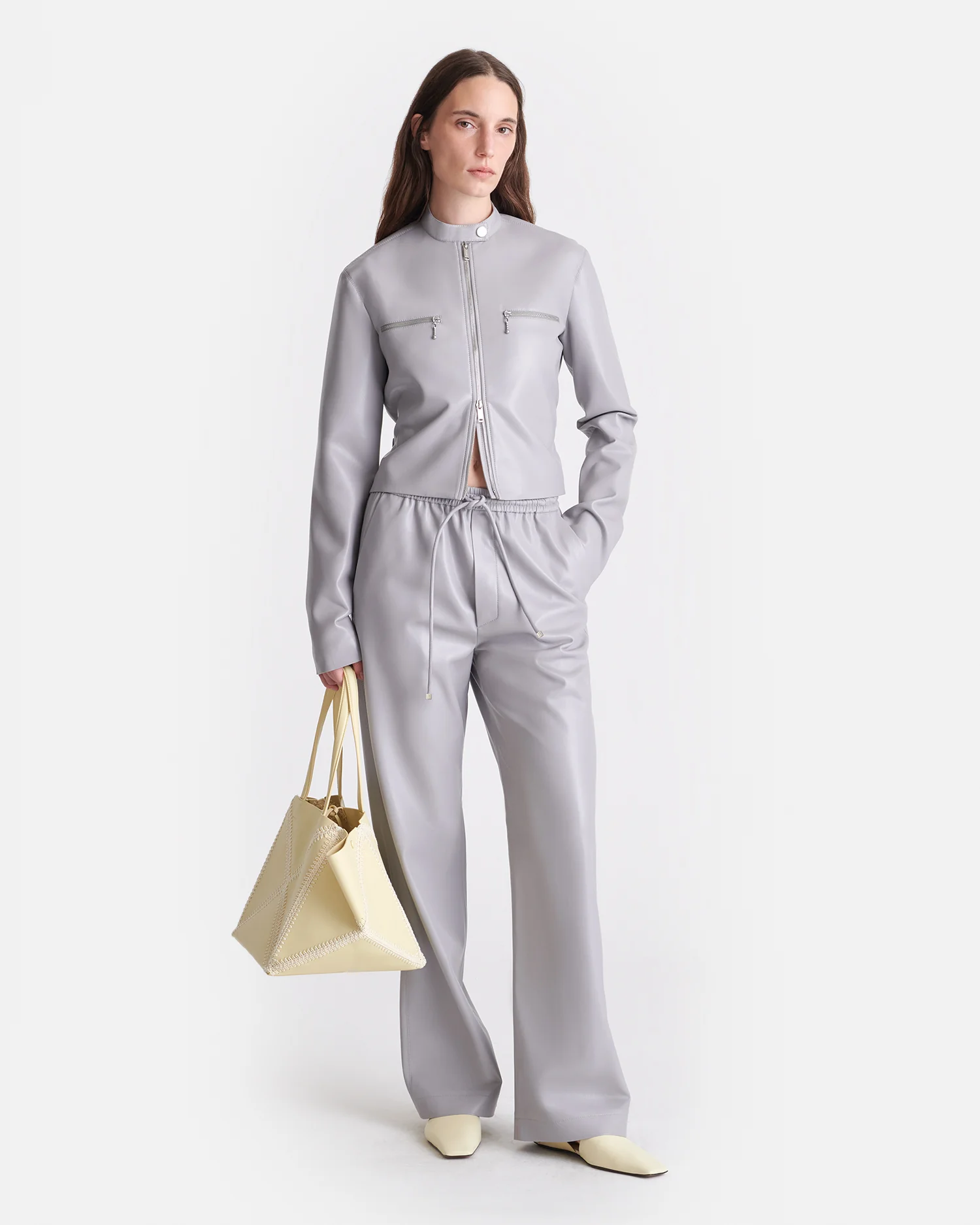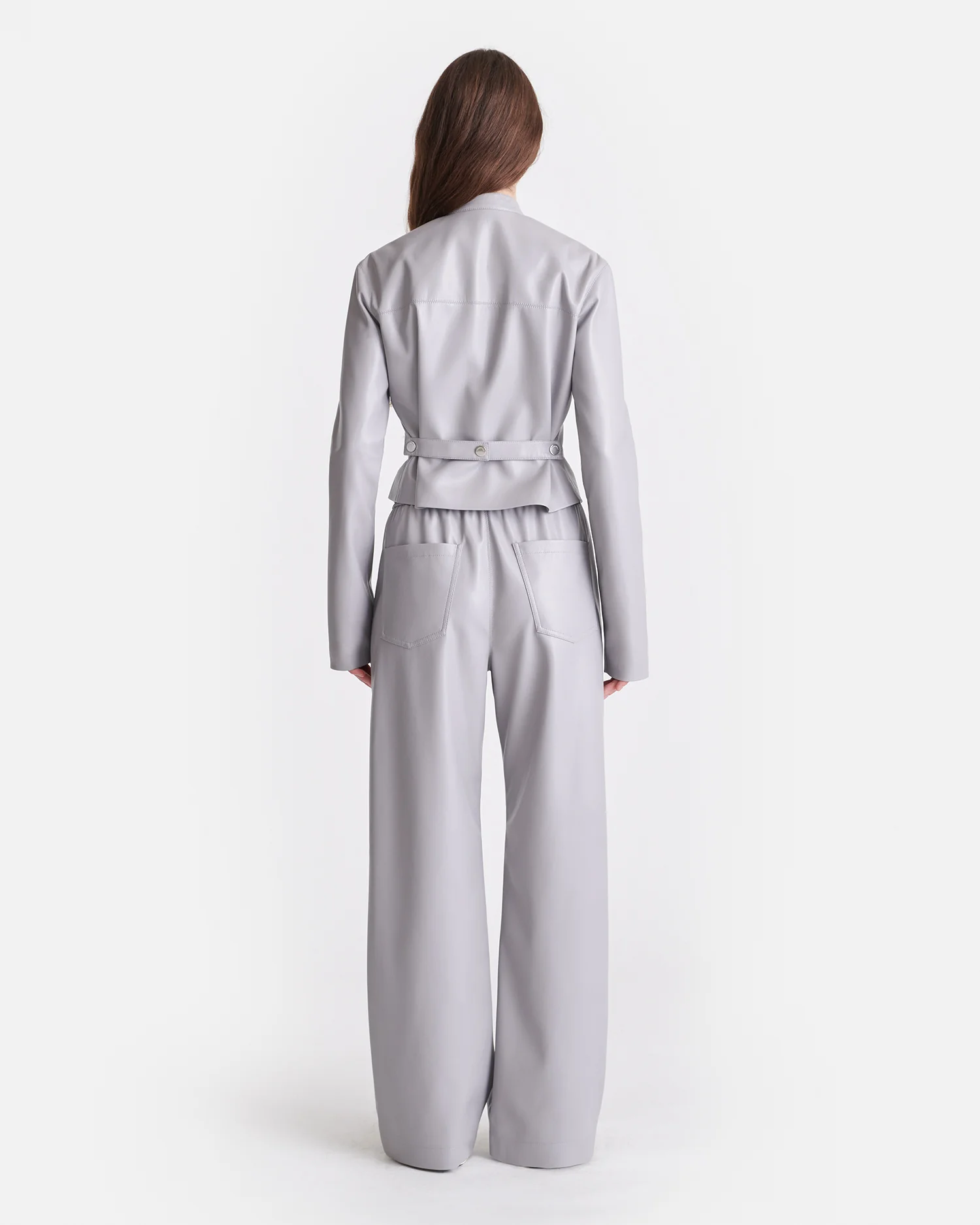 The Calie pants are made from our signature OKOBOR™ alt-leather in classic grey. A casual, easy-to-wear style, they come with adjustable drawstrings at the waist so you can flex the relaxed fit.