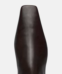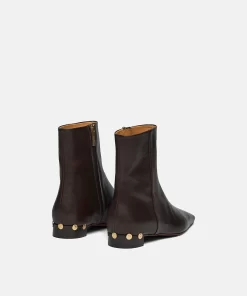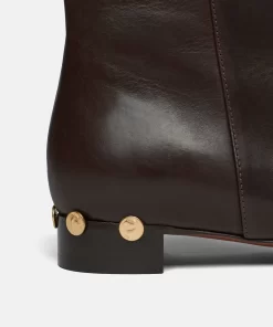 Resort 2023 updates the Isla boots in a rich dark chocolate colorway. Responsibly made from calf leather, they retain their signature angular silhouette that rests above the ankle and sits on an understated block heel.