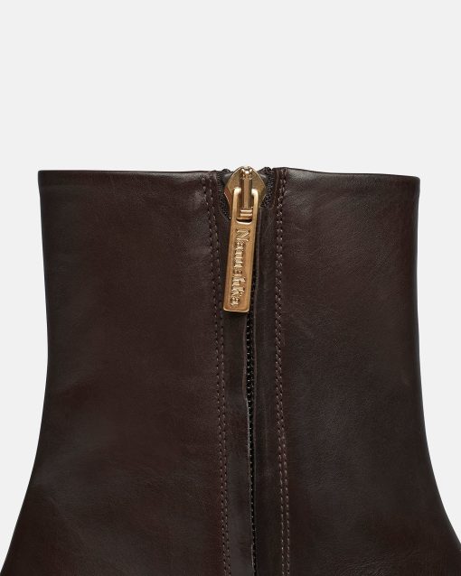 Resort 2023 updates the Isla boots in a rich dark chocolate colorway. Responsibly made from calf leather, they retain their signature angular silhouette that rests above the ankle and sits on an understated block heel.