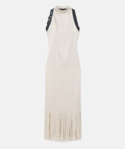 Fabric manipulation is one of our favourite design features. The Miruna dress is detailed with a wave of fringing at the hem that has been meticulously cut by hand. It’s made from crinkled satin in a timeless ecru tone and fits close through the body from the halter neckline.