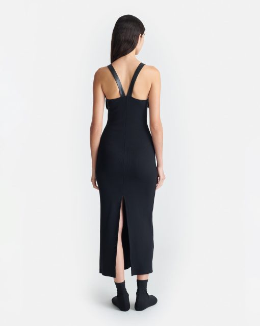 Drawing on a book on antique paper craft, we are inspired by the looped shapes created by paper for Spring/ Summer 2025. Made from ribbed jersey, the Gildah dress has a loopback fringe detail made from our signature OKOBOR™ alt-leather.