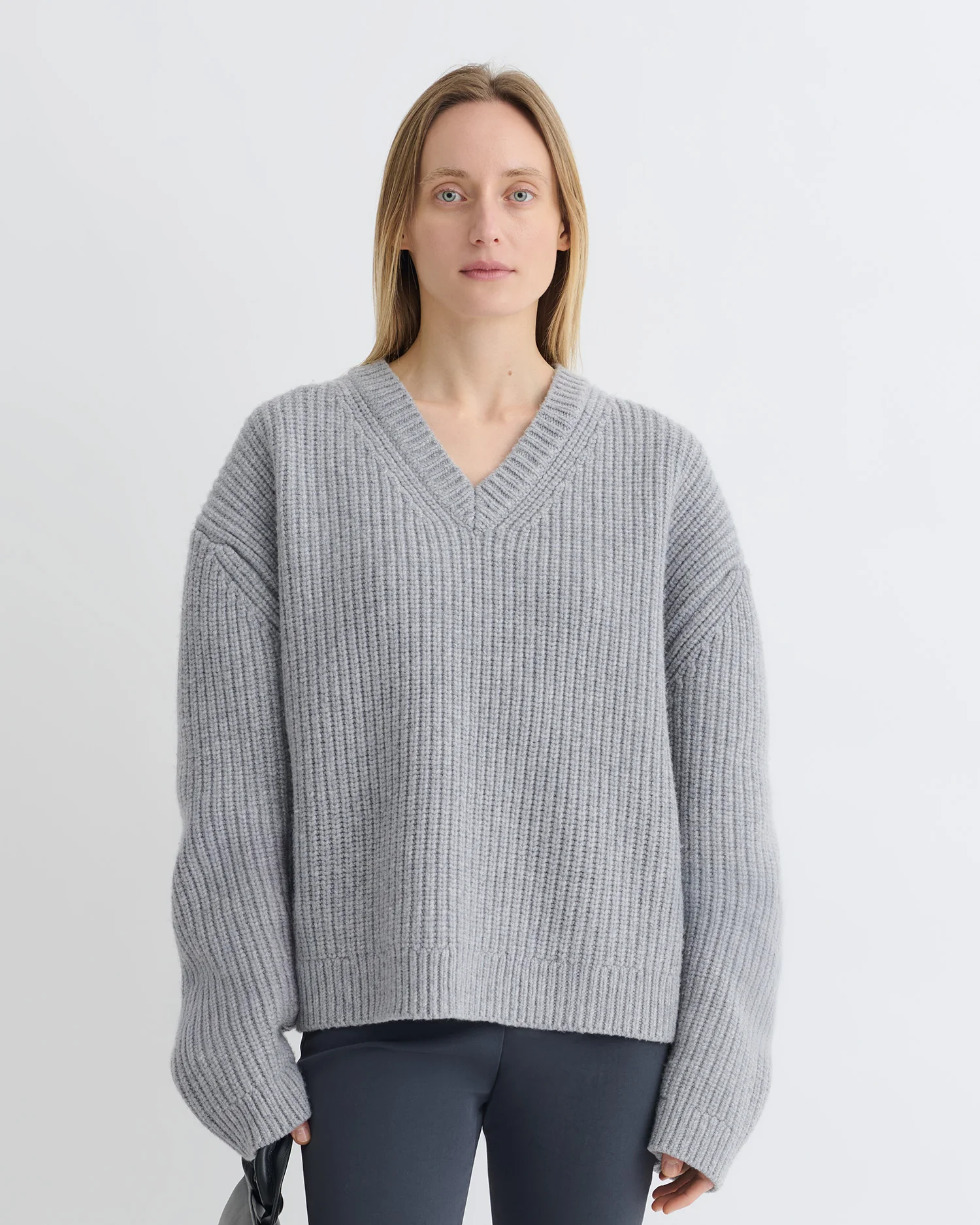 The Morcar sweater is an appreciation of craftsmanship and simplicity. Knitted from a super-soft blend of merino wool and cashmere, it has a classic V-neck and dropped shoulder seams to emphasise the cosy silhouette.