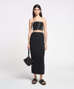 The Luisa tube top is an elevated wardobe foundation. It is cut from our signature mesh jersey for a lightweight finish and close fit, and detailed with contrasting white piping that wraps around the body.