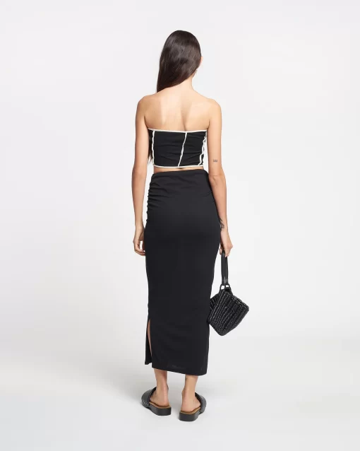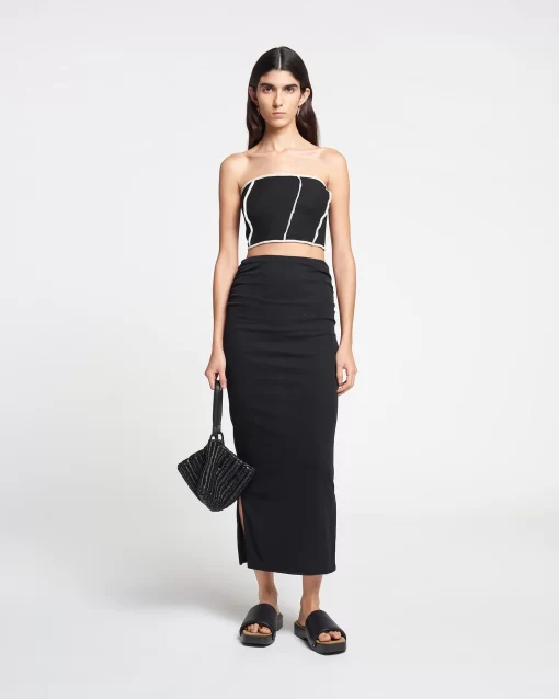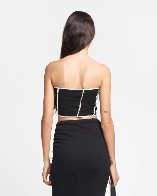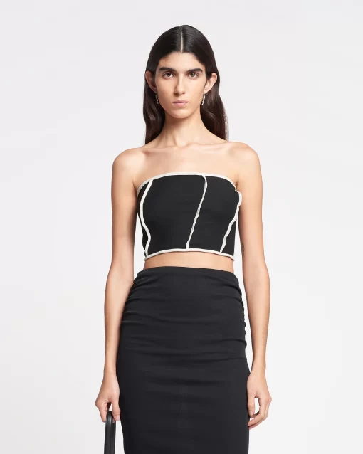 The Luisa tube top is an elevated wardobe foundation. It is cut from our signature mesh jersey for a lightweight finish and close fit, and detailed with contrasting white piping that wraps around the body.