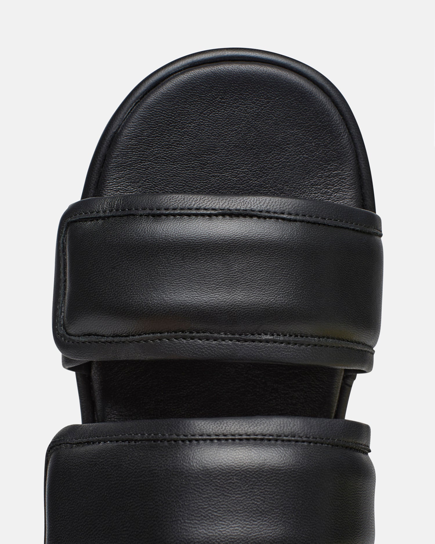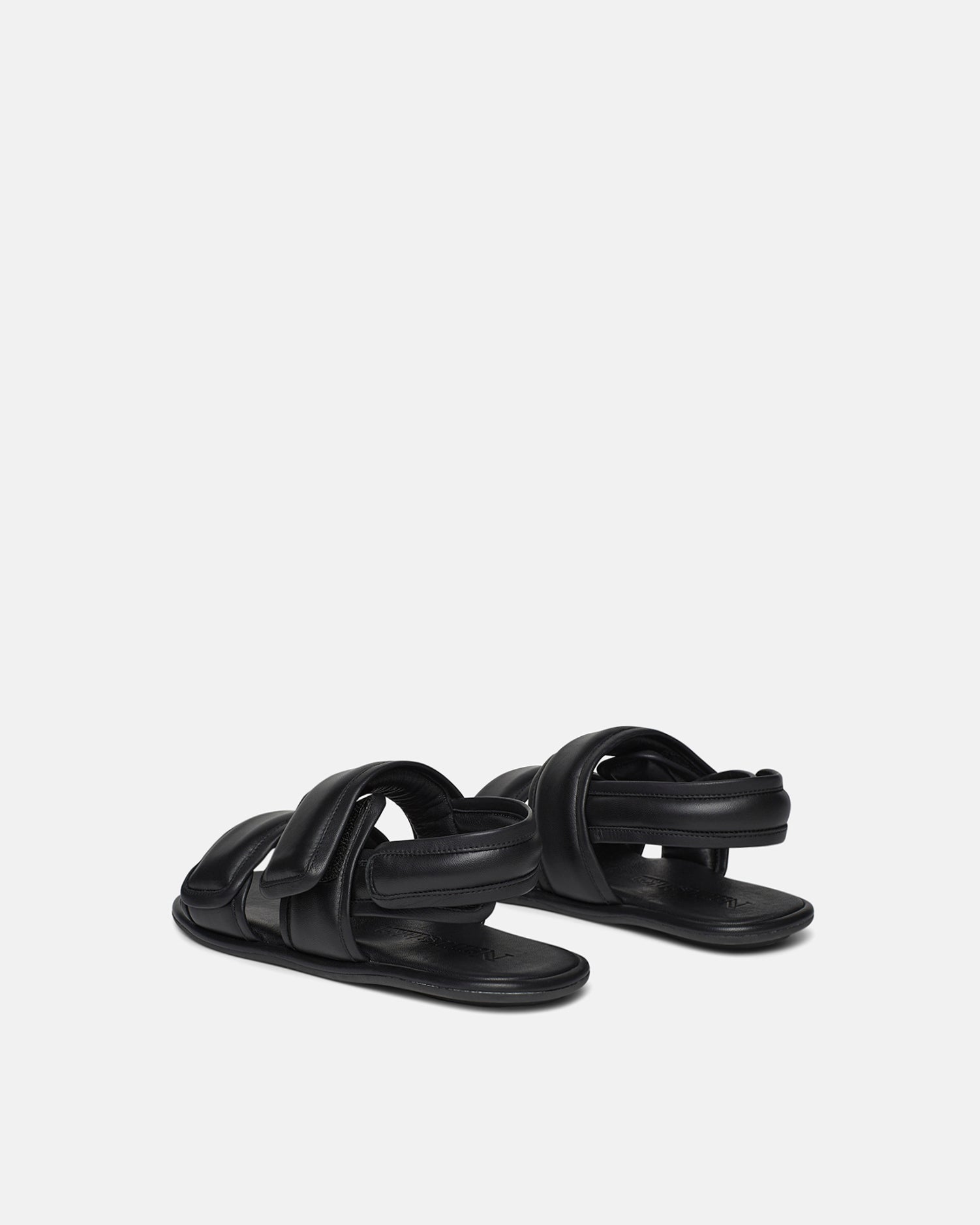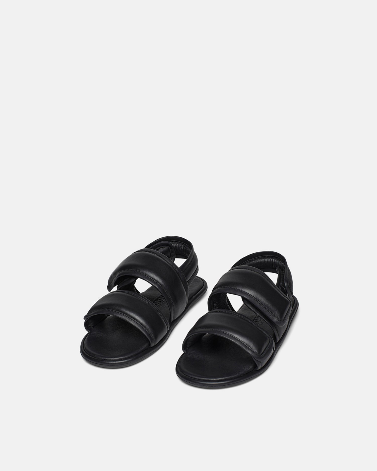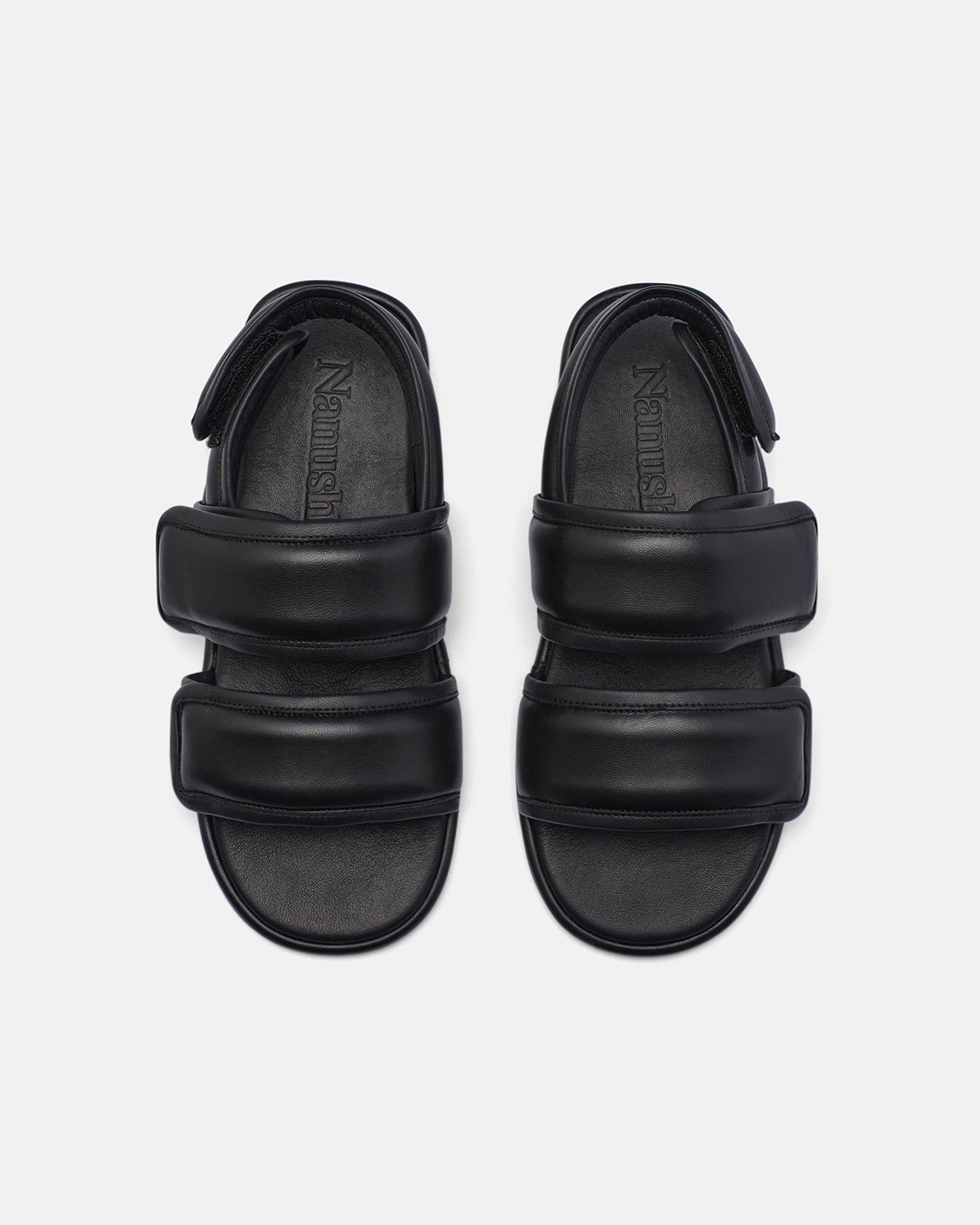 Sumptuously squishy, the Tarrus flat sandals are crafted from black padded nappa leather. Thick velcro straps and a round toe confirm this style’s comfortable credentials. Wear them with everything from laid back summer tailoring to your failsafe jeans.